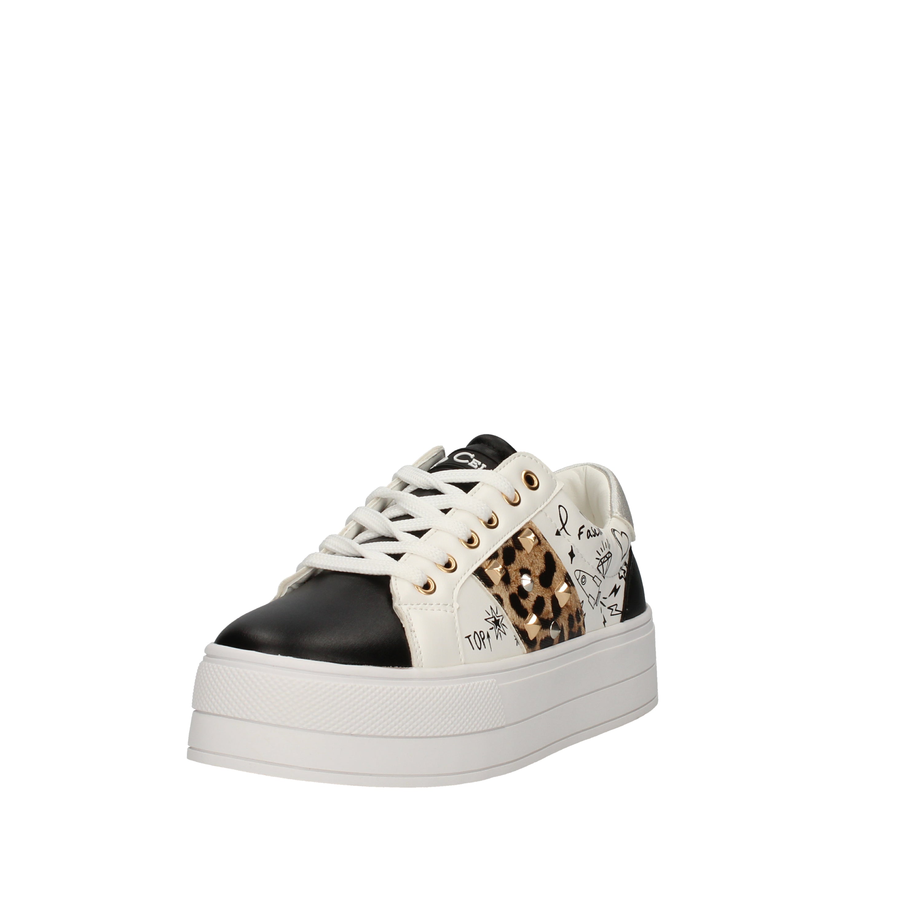 Gio Cellini sneakers con fondo a cassetta, scritte e applicazione animalier