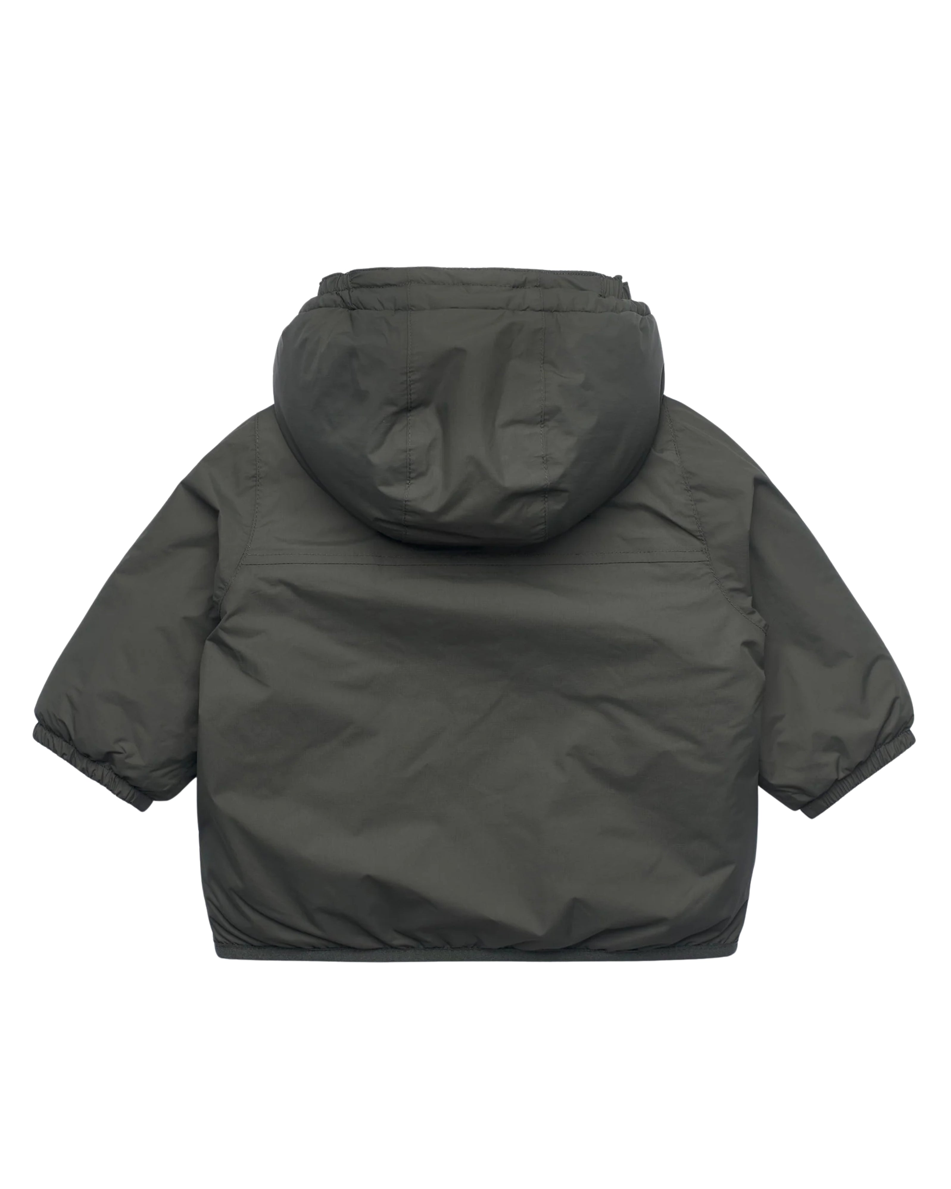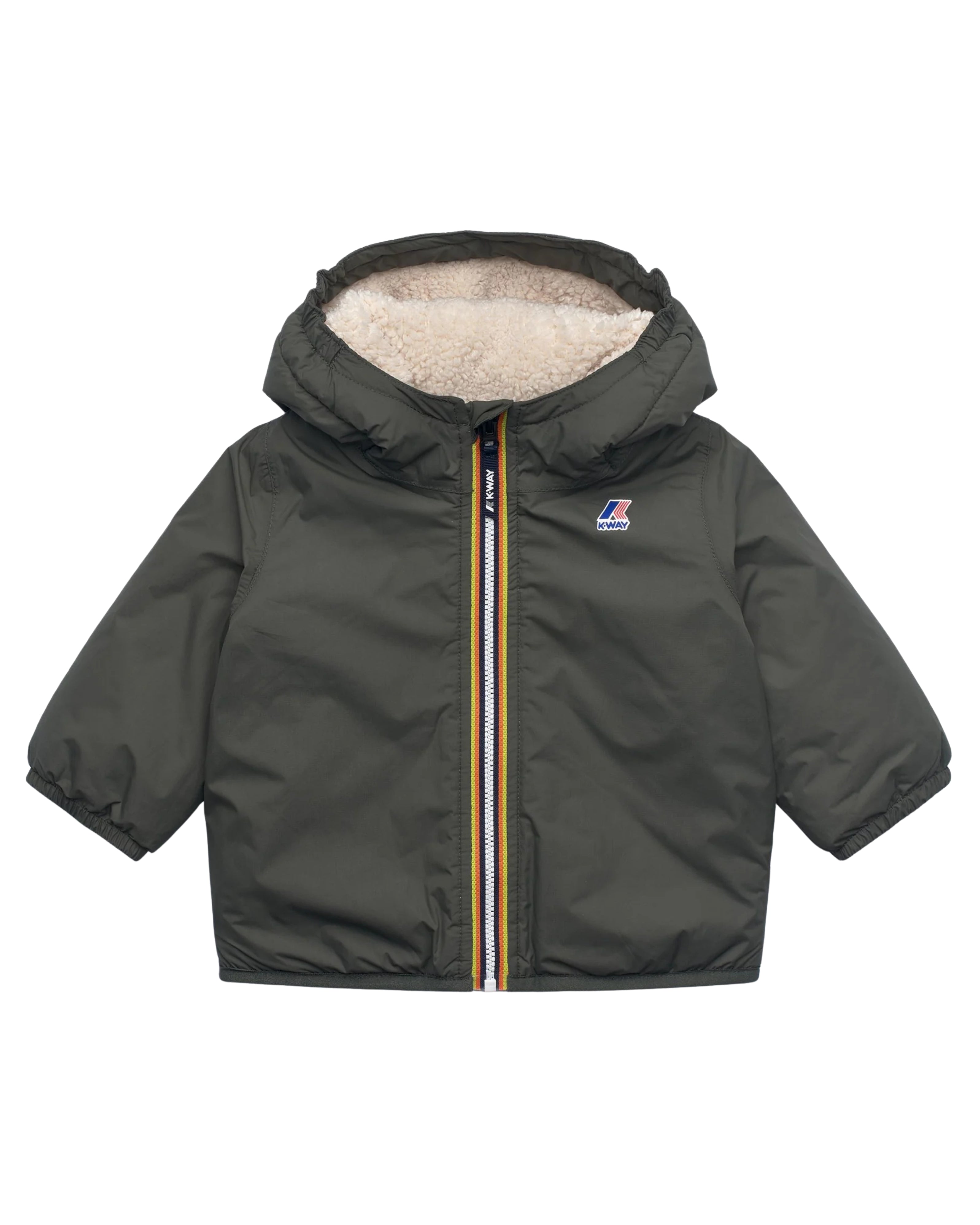 Il giubbino Claudine, in questa elegante variante verde scuro, è una giacca corta ideata per neonati e bambini fino ai 2 anni, perfetta per accompagnare le mezze stagioni e i primi freddi con stile e protezione. La struttura è realizzata in nylon micro ripstop 100% riciclato, un materiale impermeabile, traspirante, antivento e idrorepellente, che garantisce resistenza e comfort. L’imbottitura in fibra riciclata PrimaLoft® assicura un calore leggero e poco ingombrante, mentre l’interno è foderato con un morbido tessuto effetto sherpa, pensato per offrire una sensazione avvolgente e calda a contatto con la pelle. Il cappuccio è dotato di bordo elasticizzato per una vestibilità sicura, così come i polsini e il fondo giacca, che aiutano a trattenere il calore. La chiusura frontale con zip è protetta da una patta interna antivento, mentre le due tasche laterali con zip offrono praticità. Le cuciture sono termonastrate per impedire l’ingresso dell’umidità, e il logo colorato stampato sul petto conferisce un tocco iconico e facilmente riconoscibile.