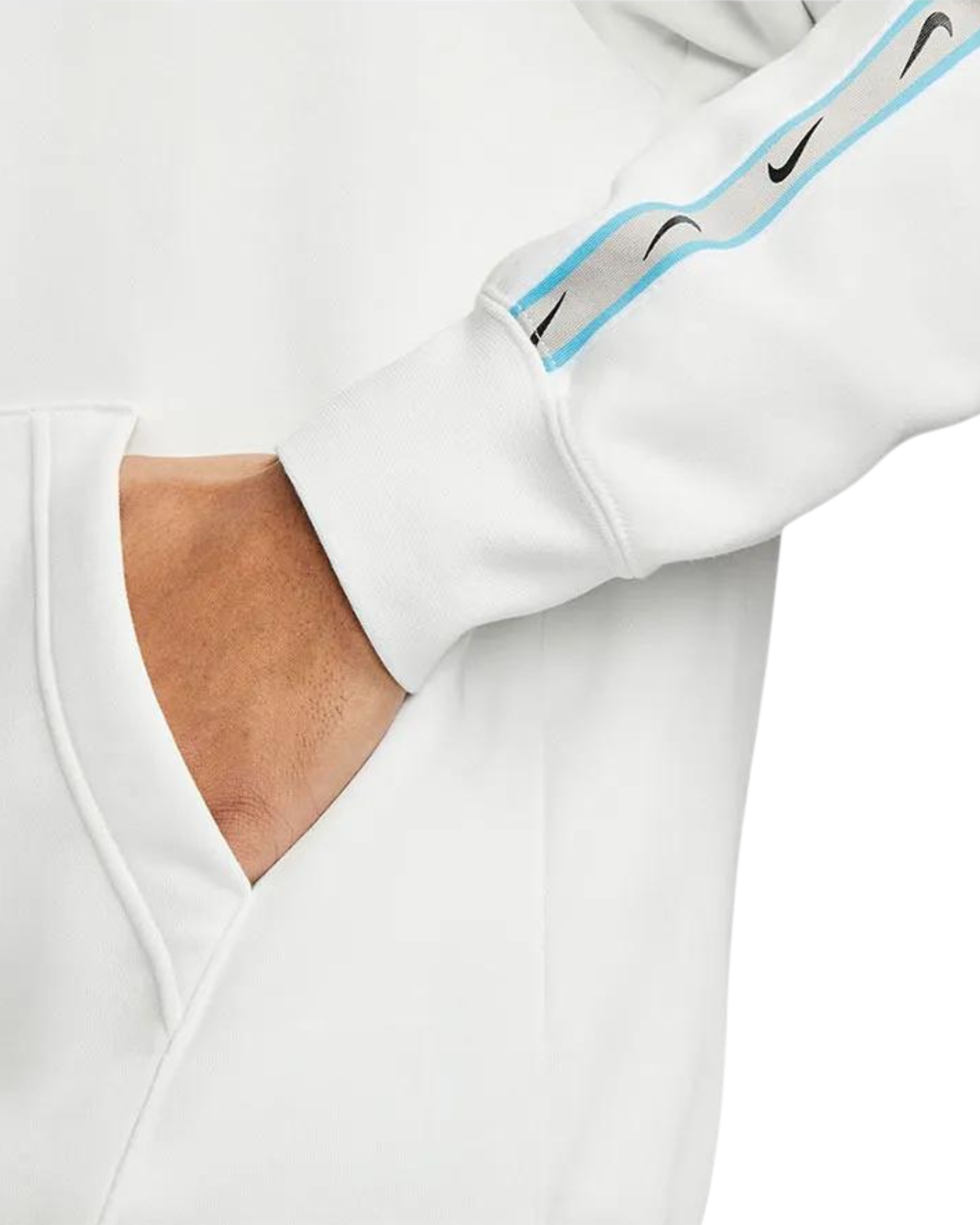 Questa felpa con cappuccio Nike Sportswear, dallo stile essenziale e moderno, è un capo indispensabile per il tuo guardaroba casual. Realizzata in morbido cotone, offre comfort e calore nelle giornate più fresche. La felpa presenta un design nero con l'iconico logo Nike bianco stampato sul petto, simbolo di qualità e stile sportivo. Le maniche sono decorate con una striscia laterale impreziosita da una serie di piccoli loghi Nike, aggiungendo un tocco distintivo e dinamico. Il cappuccio regolabile con cordini e la tasca a marsupio frontale rendono questo capo pratico e versatile, perfetto per il tempo libero o l'attività sportiva