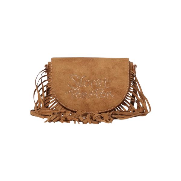 La borsa Secret Pon Pon della linea Kate unisce stile boho e dettagli glam, diventando l’accessorio ideale per completare look casual e femminili. Realizzata in morbido materiale effetto suede, si distingue per le frange laterali e inferiori che donano movimento e personalità. La patta frontale è impreziosita dalla scritta logo con micro-borchie luminose, elemento iconico del brand. Compatta ma funzionale, è perfetta per accompagnarti durante la giornata o nel tempo libero, aggiungendo un tocco ricercato a ogni outfit. Una scelta trendy e versatile, pensata per chi ama un design originale e inconfondibile.