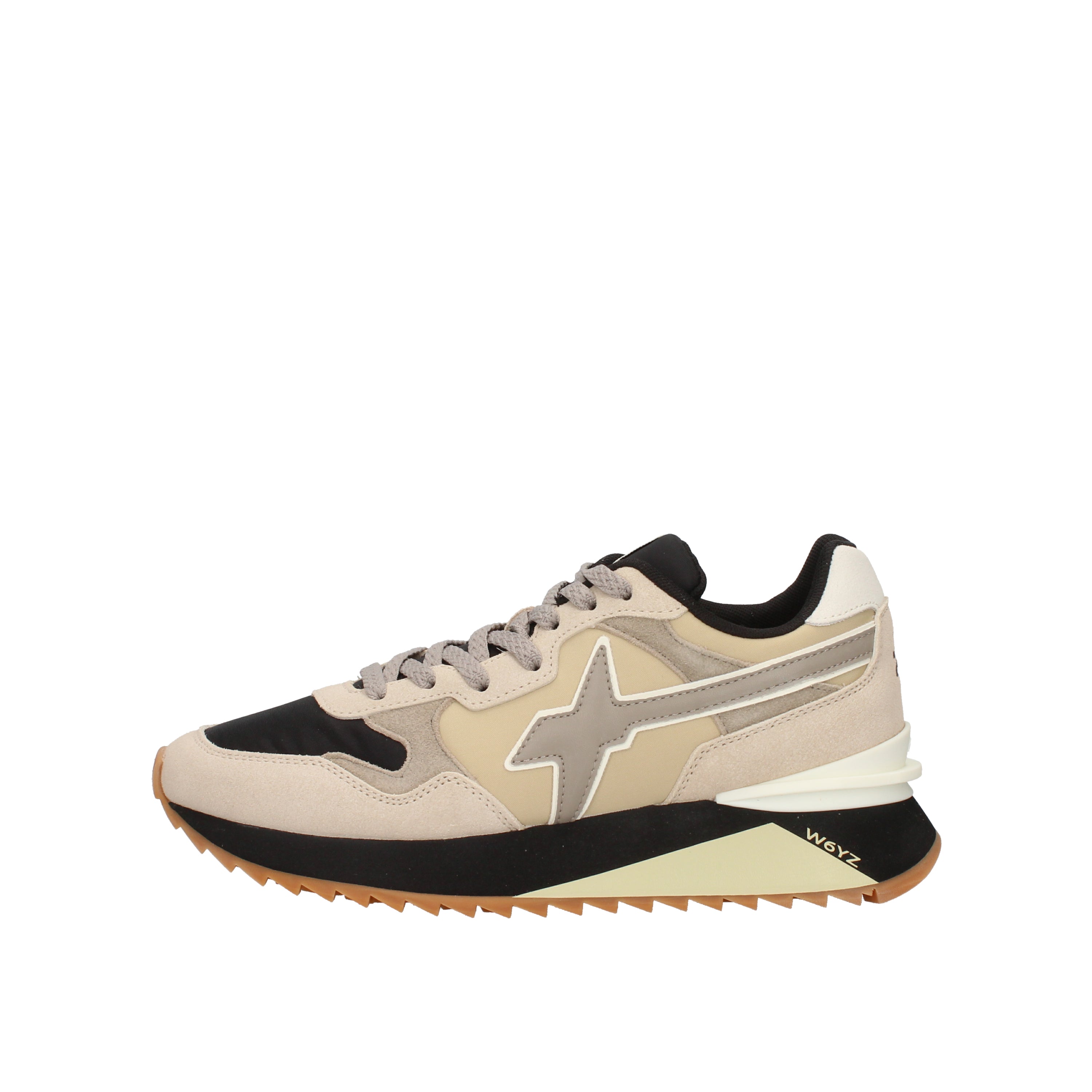 Le sneakers W6yz presentano un design moderno e accattivante, perfetto per chi desidera uno stile urban e contemporaneo. Realizzate con una tomaia in tessuto tecnico e inserti in suede, queste scarpe garantiscono resistenza e comfort per l'uso quotidiano. Il dettaglio iconico del logo a stella laterale aggiunge un tocco distintivo, mentre la suola in gomma sagomata offre stabilità e aderenza, rendendole ideali per l'outdoor e per la vita in città. I lacci tono su tono e la palette di colori neutri le rendono facili da abbinare a diversi outfit, perfette per chi cerca una sneaker versatile senza rinunciare al trend.